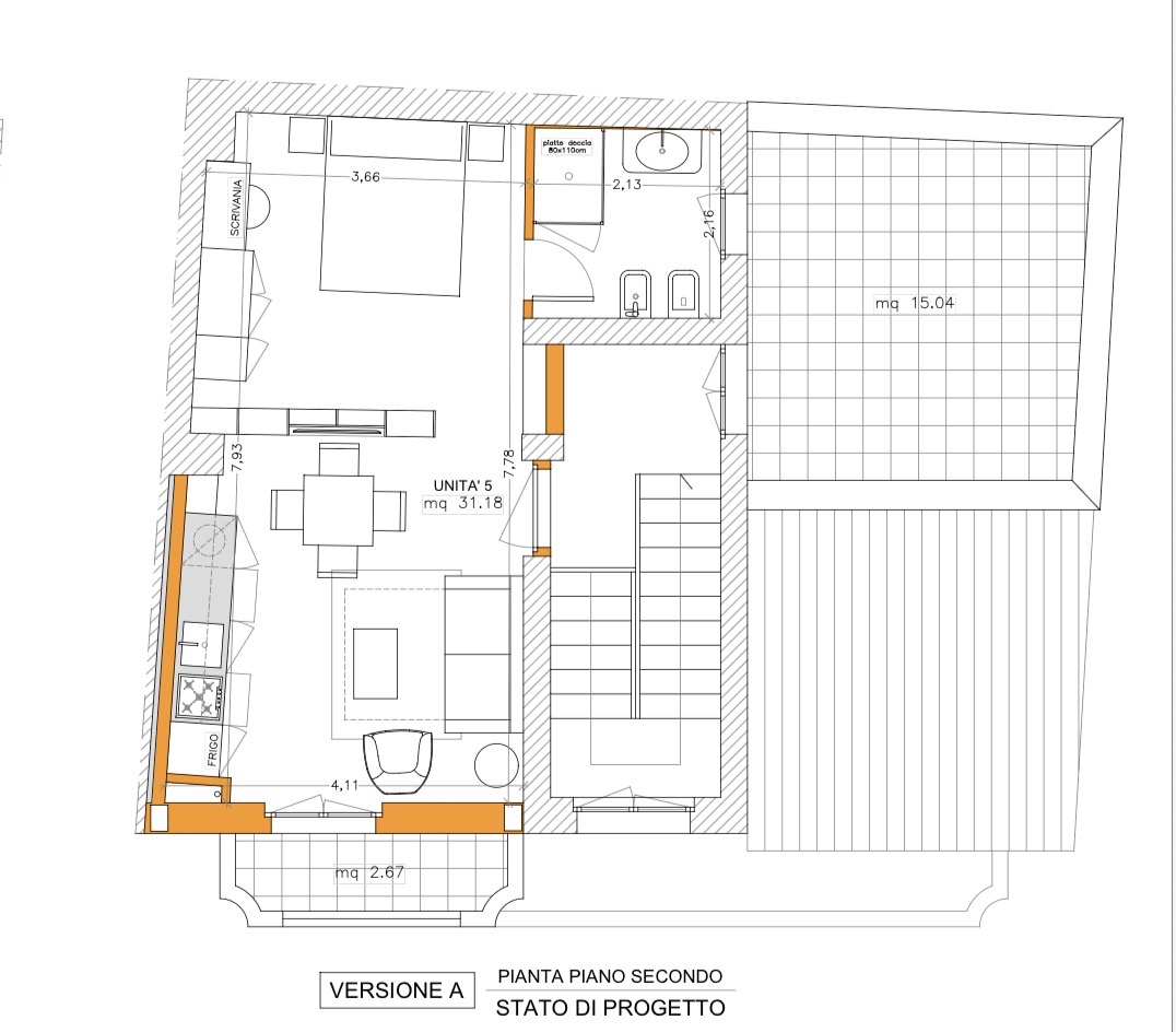 – Il terrazzo è dotato di una stanza abitabile, ideale come ulteriore camera, studio o piccolo appartamento indipendente in quanto munito di predisposizione angolo cottura e bagno.