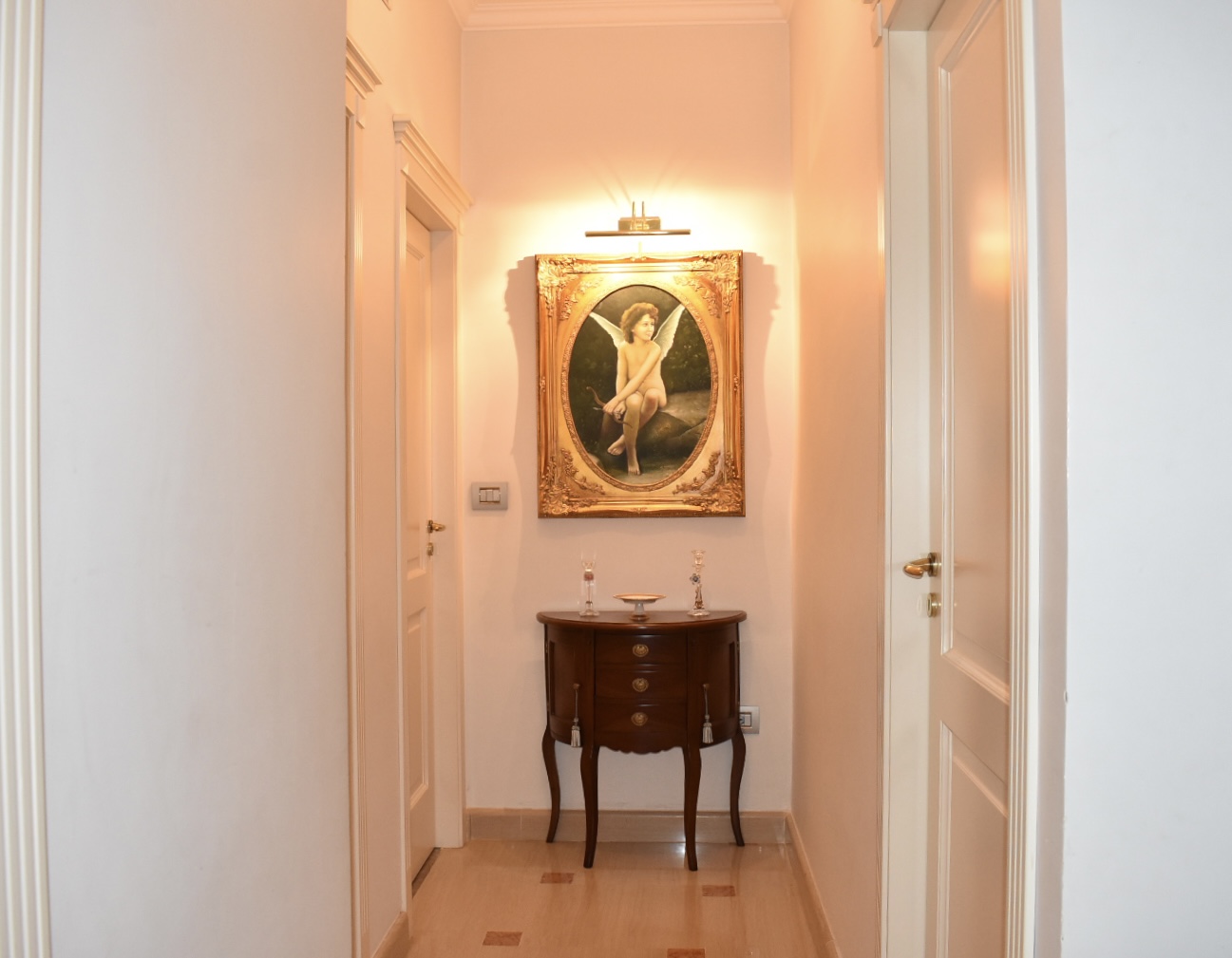 Dotato di tutti i comfort: impianto di climatizzazione canalizzato, caldaia a condensazione, infissi in legno/ alluminio “Double B”. Finiture di qualità con marmo nella zona giorno e parquet nella zona notte, controsoffitti con faretti e porte artigianali in legno.